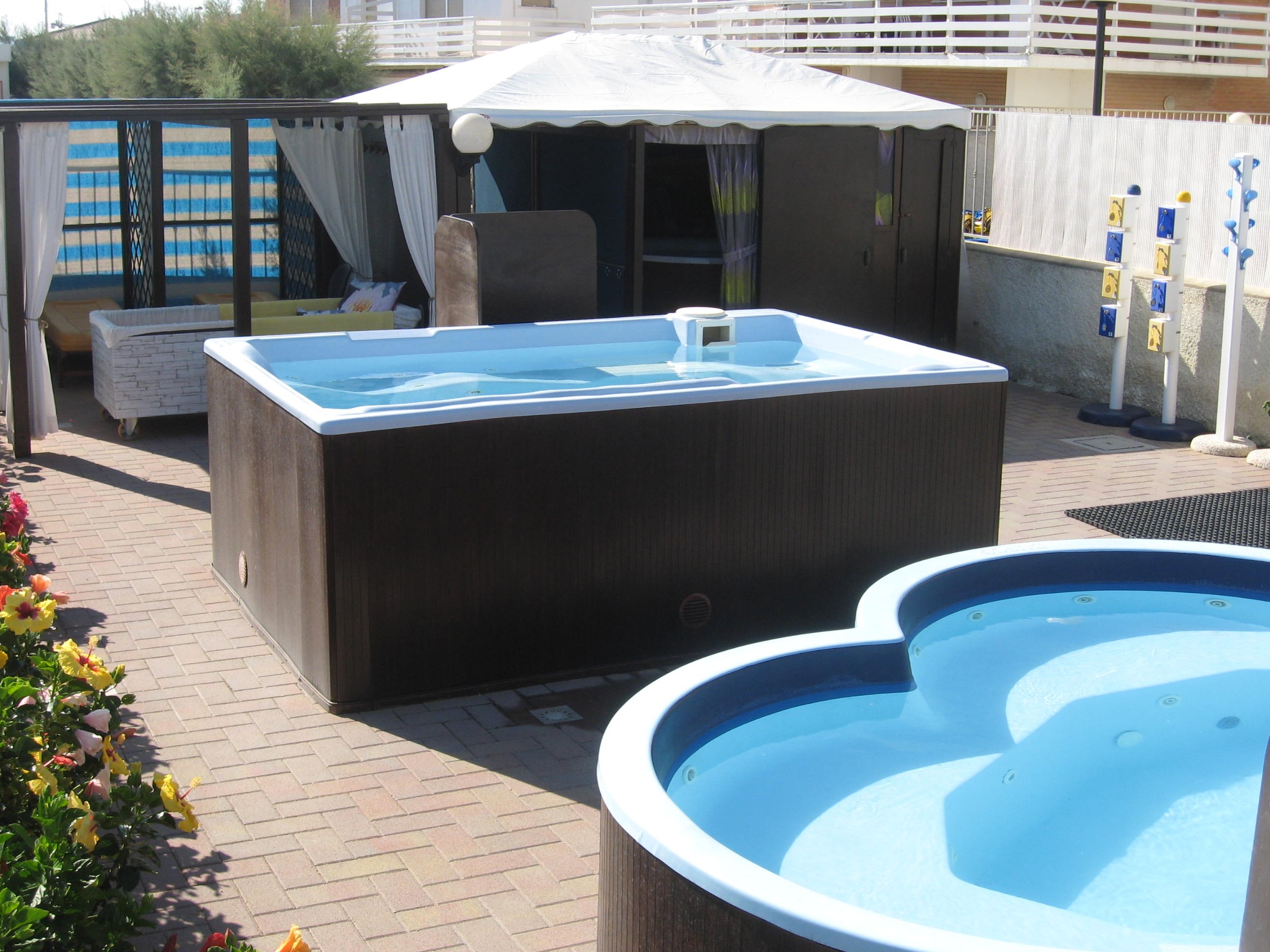 Una vasca idromassaggio con postazioni sedute e sdraiate, progettata per offrire massaggi mirati su diverse zone del corpo grazie a getti differenziati. L’acqua, arricchita con magnesio, potassio e iodio, a 30–32°C per una durata di 20 minuti, favorisce rilassamento e benessere profondo.